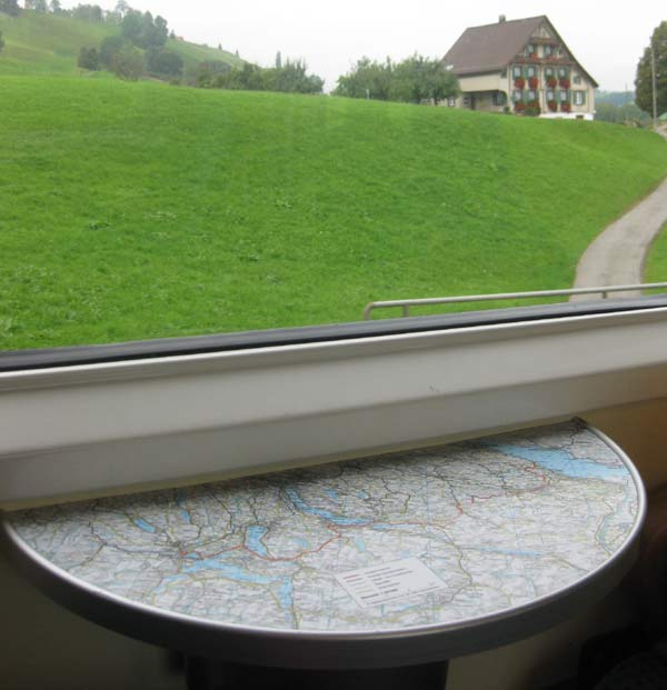 Now they are going one step further, employing useful visual representations to decorate the train! Indeed they printed the map of the train route on the tables, so passengers can entertain themselves looking at the map, learn about Swiss geography, and always know what are the next stops.