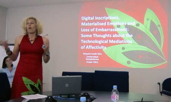 From a visual point of view I was very much impressed by the presentation by Professor Amparo Lazén Dìaz (Universidad Complutense de Madrid). I guess this could be called “Integrated Presentation Communication”, adapted from Integrated Marketing Communication! Wonderful and surprising matching of on-line and off-line communication 🙂